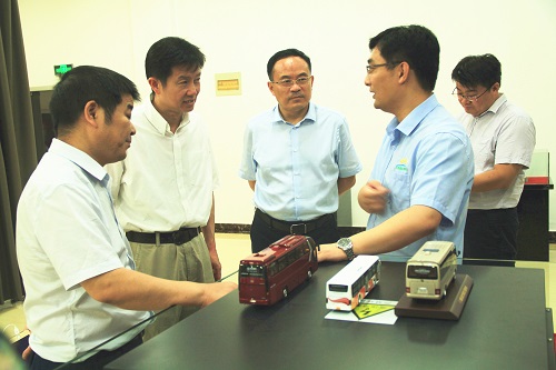 圖二:玉皇新能源董事長王瑛為考察人員介紹電池應用車型