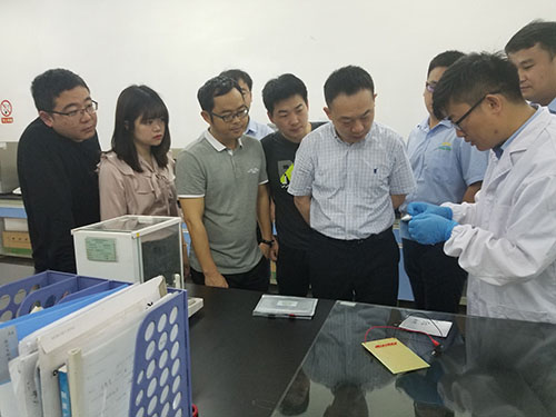 在公司董事長(zhǎng)王瑛、副總經(jīng)理董鑫、副總經(jīng)理王念貴、工藝總監(jiān)竇燕蒙博士、汽車銷售公司副總經(jīng)理劉偉的陪同下,先后參觀了玉皇集團(tuán)展廳、玉皇新能源技術(shù)研發(fā)中心、公司展廳及動(dòng)力電池自動(dòng)化生產(chǎn)線等。董事長(zhǎng)王瑛詳細(xì)介紹了公司的整體運(yùn)營(yíng)、相關(guān)產(chǎn)業(yè)以及電池生產(chǎn)過(guò)程、產(chǎn)品性能及市場(chǎng)開拓情況。